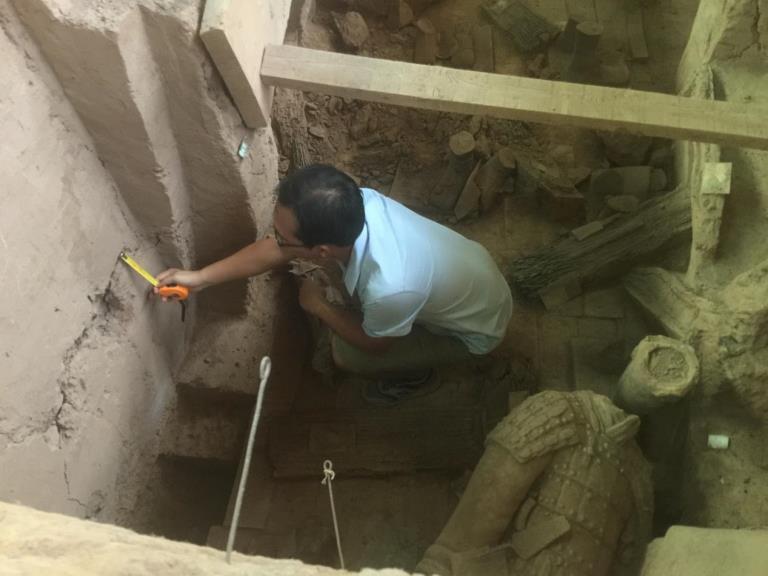 勘測公司技術(shù)人員在秦始皇兵馬俑1號坑現(xiàn)場調(diào)查測繪