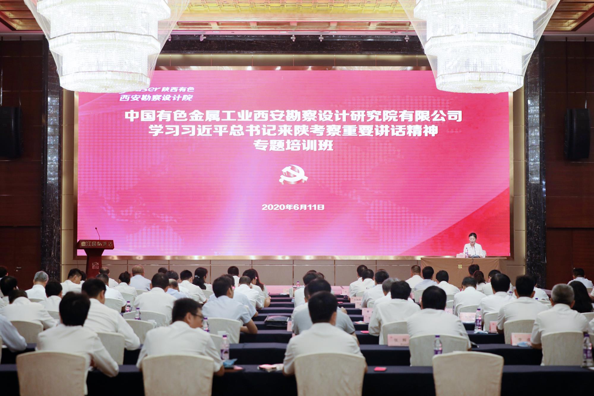 6月11日,為深入學習貫徹習近平總書記來陜考察重要講話精神,中國有色金屬工業西安勘察設計研究院有限公司舉辦的學習習近平總書記來陜考察重要講話精神專題培訓班如期開班。公司黨委書記、執行董事許蓁蓁作專題宣講。培訓由公司黨委委員、副總經理、總會計師趙黎明主持。公司黨委委員、中層領導干部、各子公司班子成員、各黨(總)支部書記和副書記、黨員發展對象參加了培訓。