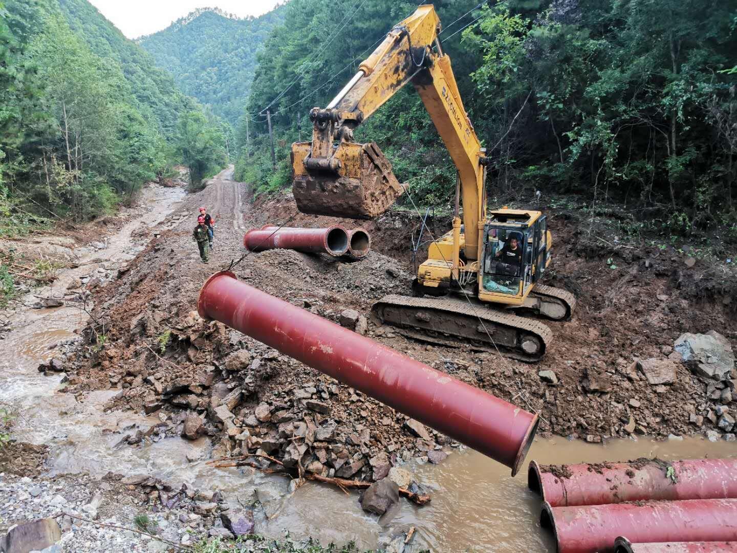 王家坪尾礦輸送管線在此次強降雨中受損最為嚴重,1號涵洞出入口、3號涵洞出口、4號涵洞入口被泥石流掩埋,尾礦輸送管道和壩下回水管道毀壞嚴重。金鉬建設針對涵洞內空間狹小、淤泥量大,沿線塌方較多,大型機械無法通行,人工作業效率低等一系列難題,及時調整搶修方案,緊急購置、租賃小型挖掘、破除設備進行清理作業,經過搶險人員10余個晝夜輪班,克服連續降雨、塌方、洪水等困難,組織近300人配合小機械作業,全力展開涵洞清淤、管道恢復作業。8月20日,王家坪尾礦輸送管線疏通修復完成,為恢復生產贏得時間。