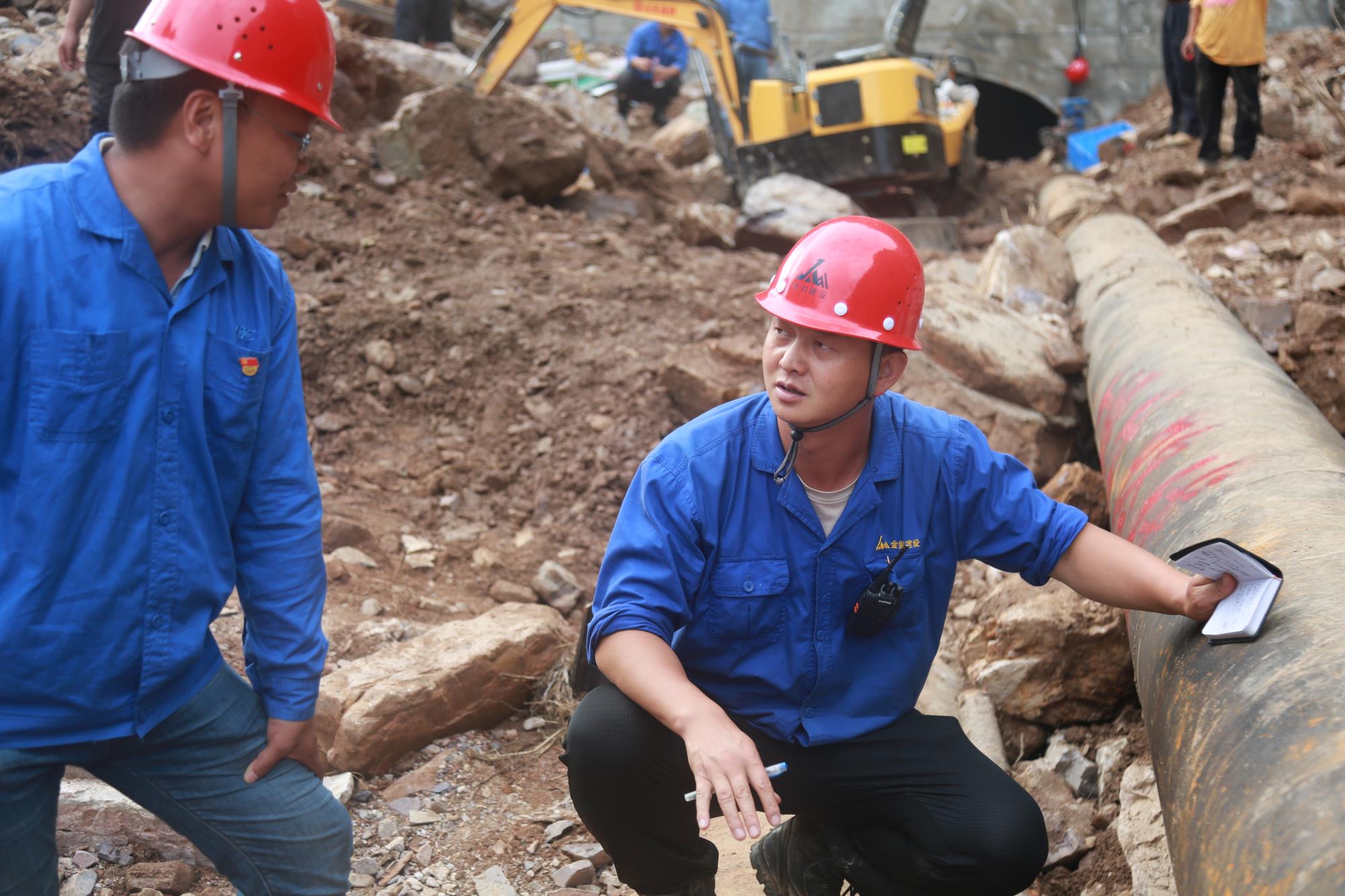 在栗西尾礦庫上壩道路打通后,他來不及休息,又接到王家坪尾礦輸送管線疏通的重任。他再次一馬當先,帶領搶險人員爬山涉水、翻山越嶺,徒步實地勘察管線受損情況,參與研究制定搶修作業方案。他們背著礦泉水、方便面,手腳并用爬過激流當道的渙家溝路段,腳踩深達80多厘米的洞內淤泥積水,從被亂石掩埋,高度只有30多厘米高的洞口夾縫中艱難爬出。他每天在泥濘中行走20余公里,從不退縮,一往無前。