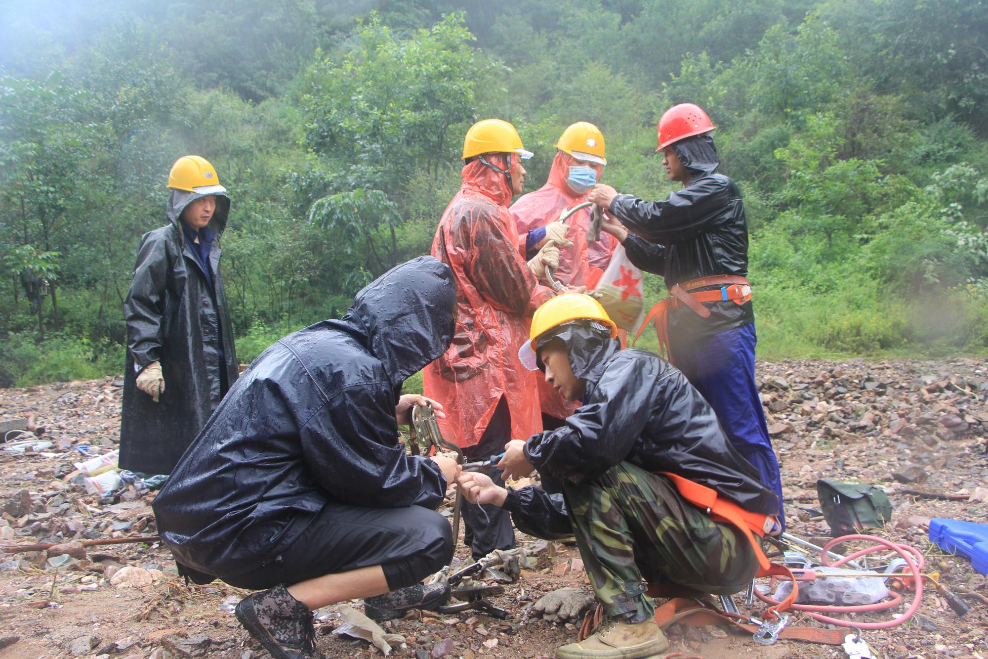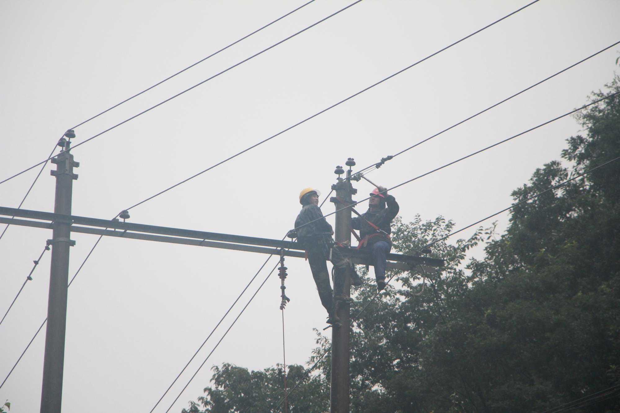 8月7日凌晨6點(diǎn),秦煜與搶修人員一起背著重達(dá)數(shù)百斤的金器具,穿著厚重的雨衣、肩扛沉重的拉線,憑借過硬的技術(shù),他們?cè)趽屝奕蝿?wù)中作為第一主力軍,分別完成了水源30號(hào)、32號(hào)、35號(hào)的上桿接線,共計(jì)在高空作業(yè)長(zhǎng)達(dá)12小時(shí)。剛搶修完的32號(hào)電桿被連降的暴雨沖刷突然折斷,線路再次中斷。次日早晨他與同事再次整裝出發(fā),進(jìn)行搶修。他們一鼓作氣,經(jīng)過11小時(shí)連續(xù)作業(yè),終于完成了電纜對(duì)接,于當(dāng)天19時(shí)47分成功接通水源Ⅰ回線路,恢復(fù)了礦區(qū)的正常供水。
