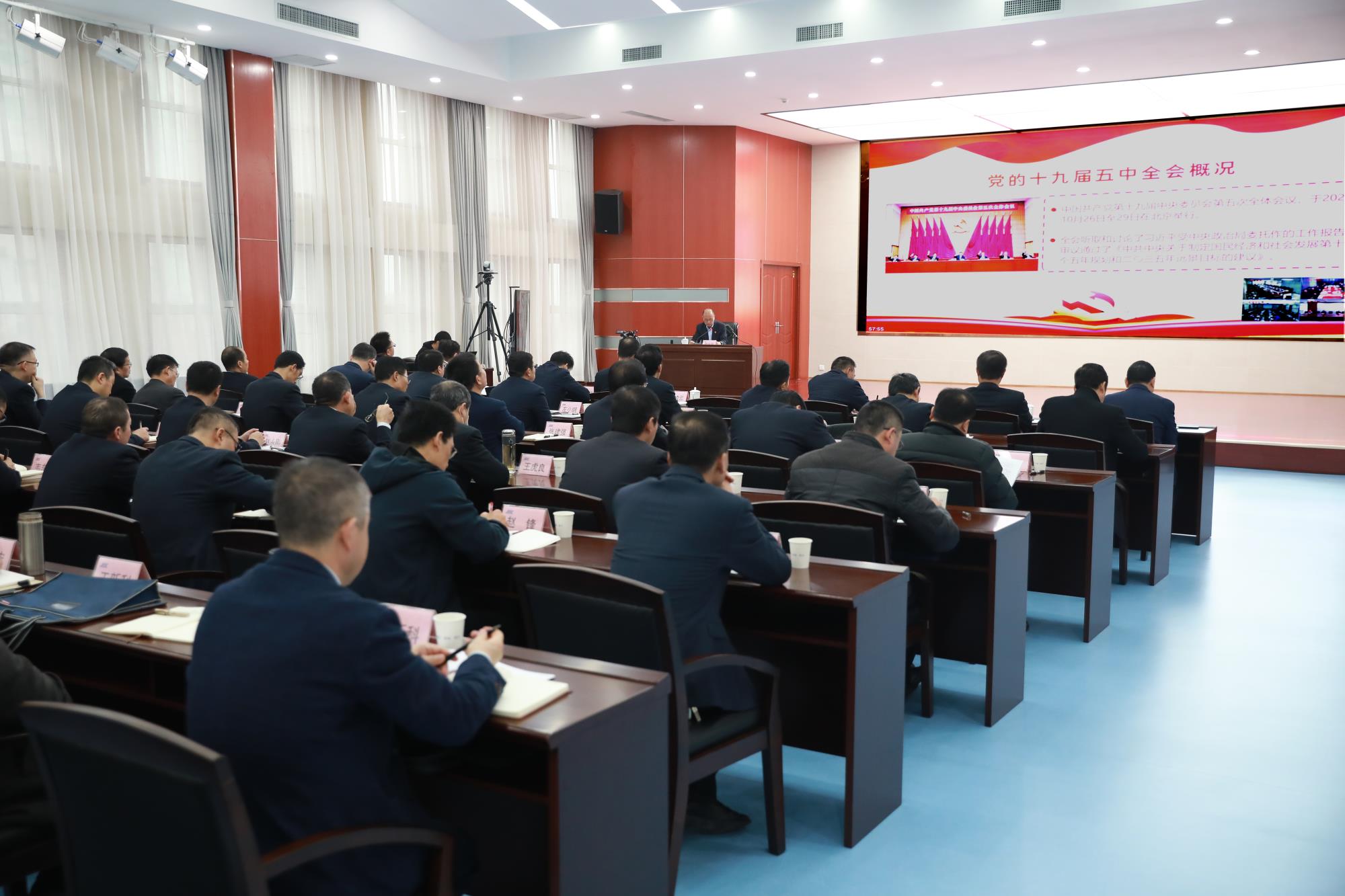 為深入學習宣傳貫徹黨的十九屆五中全會精神,推動全會精神走深走實,12月2日,學習貫徹黨的十九屆五中全會精神陜西有色金屬集團宣講團報告會在金鉬集團舉行。陜西有色金屬集團宣講團成員,金鉬集團黨委書記、董事長程方方宣講。黨委副書記、工會主席朱凌云主持。