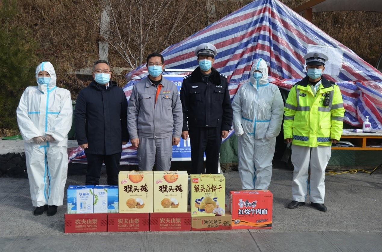 為積極助力當地政府疫情防控工作,黃金集團四方金礦的志愿者為鳳縣坪坎鎮政府和坪坎高速路檢查卡點的執勤人員送去了洗手液、84消毒液、口罩及方便面、礦泉水等物資,感謝防疫執勤人員不顧危險、舍小家為大家,希望點點心意帶給大家一些溫暖。地礦集團震奧鼎盛礦業公司積極參加鳳縣留鳳關鎮“暖冬清潔行動”,捐贈2000元物資,并多次為地方防疫醫護人員送去慰問品,以實際行動助力鳳縣疫情防控工作。