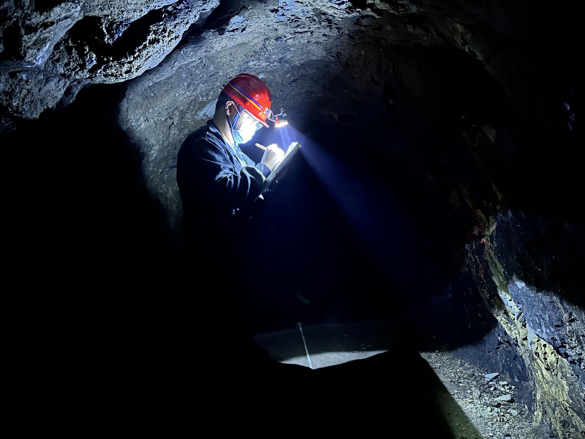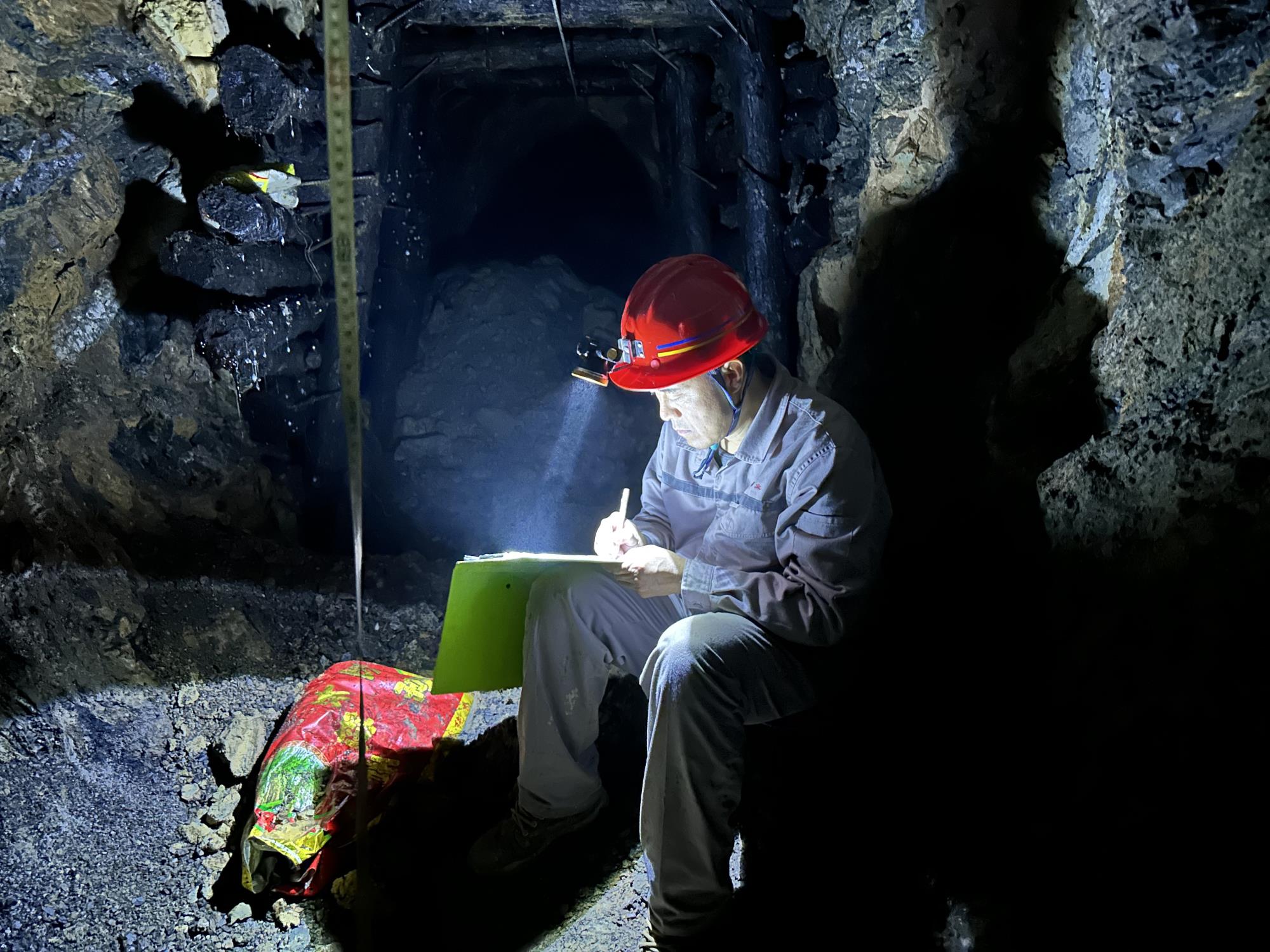 當(dāng)寨子溝礦區(qū)樣品送檢后,坑道成了我的另一個(gè)課堂。師父教我測(cè)量各類產(chǎn)狀,教我展點(diǎn)和產(chǎn)狀,教我如何勾畫地質(zhì)界線……水珠從坑道頂板滴落,在礦燈光束里拉出銀線。師父的筆尖在巖壁上游走如活物,筆尖順層理滑動(dòng),在圖紙上旋出流暢的曲線。昏暗光線下,那墨線竟有了生命般微微搏動(dòng)——巖石的密碼被解開一道縫隙,礦脈的暖流正滲出石壁。地質(zhì)錘叩擊巖壁的顫音未散,巖石紋層間簌簌剝落的碎屑里,恍有古河道裹挾風(fēng)沙的呼嘯掠過(guò)指腹。