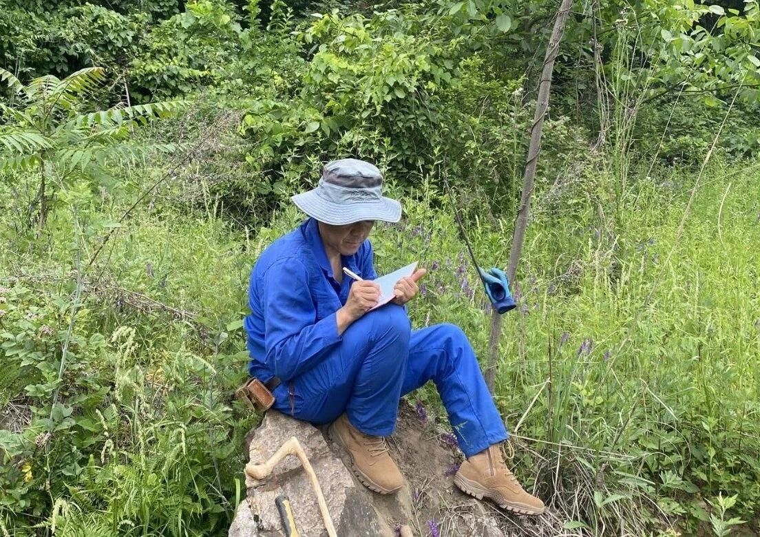 一旦天光微亮,雨勢暫歇,我與師兄楊澤男便立即帶上地質(zhì)錘、羅盤和記錄本,直奔寨子溝。那里山勢陡峻,無路可循,我們便憑四肢攀援,靠工具借力,每一步都踏實(shí)得近乎笨拙。茂密的灌木叢時(shí)時(shí)牽扯衣褲,裸露的巖石在雨水沖刷后格外濕滑。行進(jìn)雖緩,心境卻并不滯重。途中與師兄時(shí)而閑聊,時(shí)而就某個(gè)地質(zhì)現(xiàn)象展開討論。喘息之間,我常想起老一輩地質(zhì)人——他們沒有如今精密儀器,沒有輕便裝備,僅憑雙腿雙手、一支鉛筆,是如何踏遍這荒蕪崎嶇,又如何將整座山的地層與構(gòu)造,理得清清楚楚?