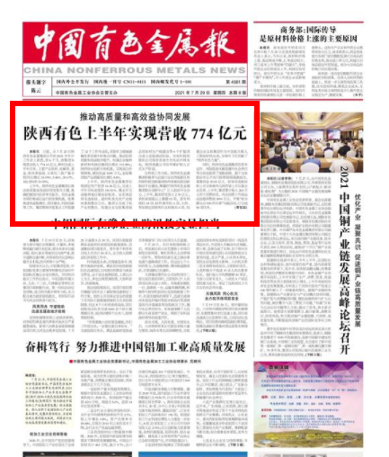 (原文鏈接:中國有色金屬報:https://paper.cnmn.com.cn/Content.aspx?id=166728&q=4581&v=1;陜西網:https://gov.ishaanxi.com/c/2021/0730/2143076.shtml )