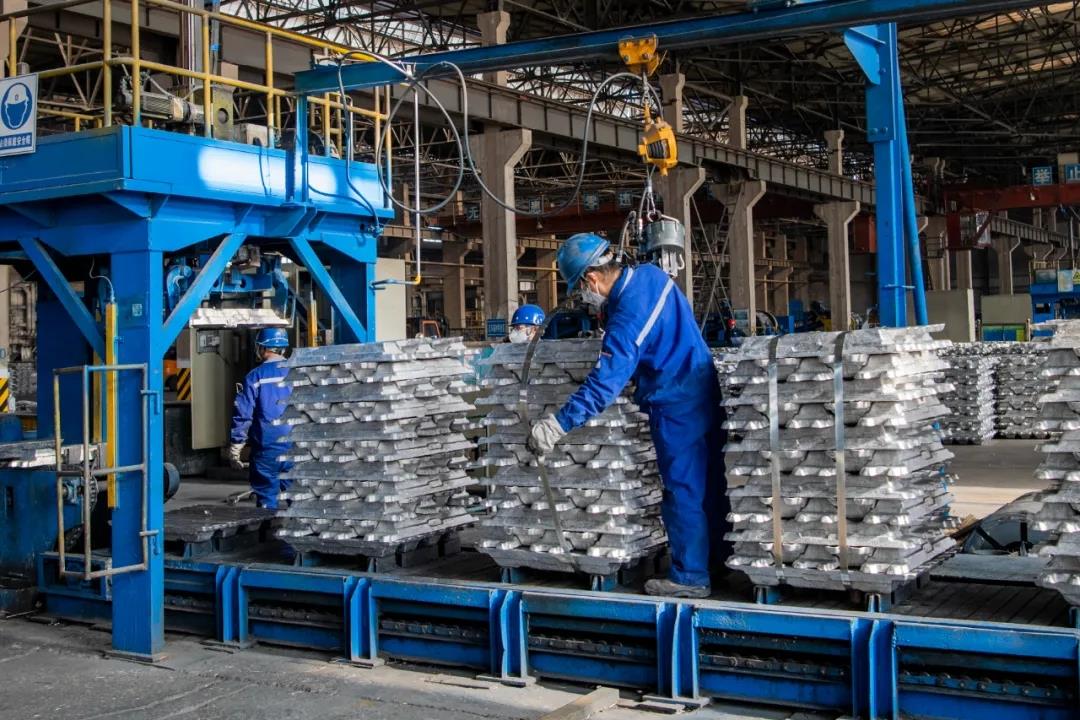 在陜西有色榆林新材料集團(tuán)鑄造車(chē)間,工人師傅正忙著對(duì)生產(chǎn)線(xiàn)上的鋁錠打捆。