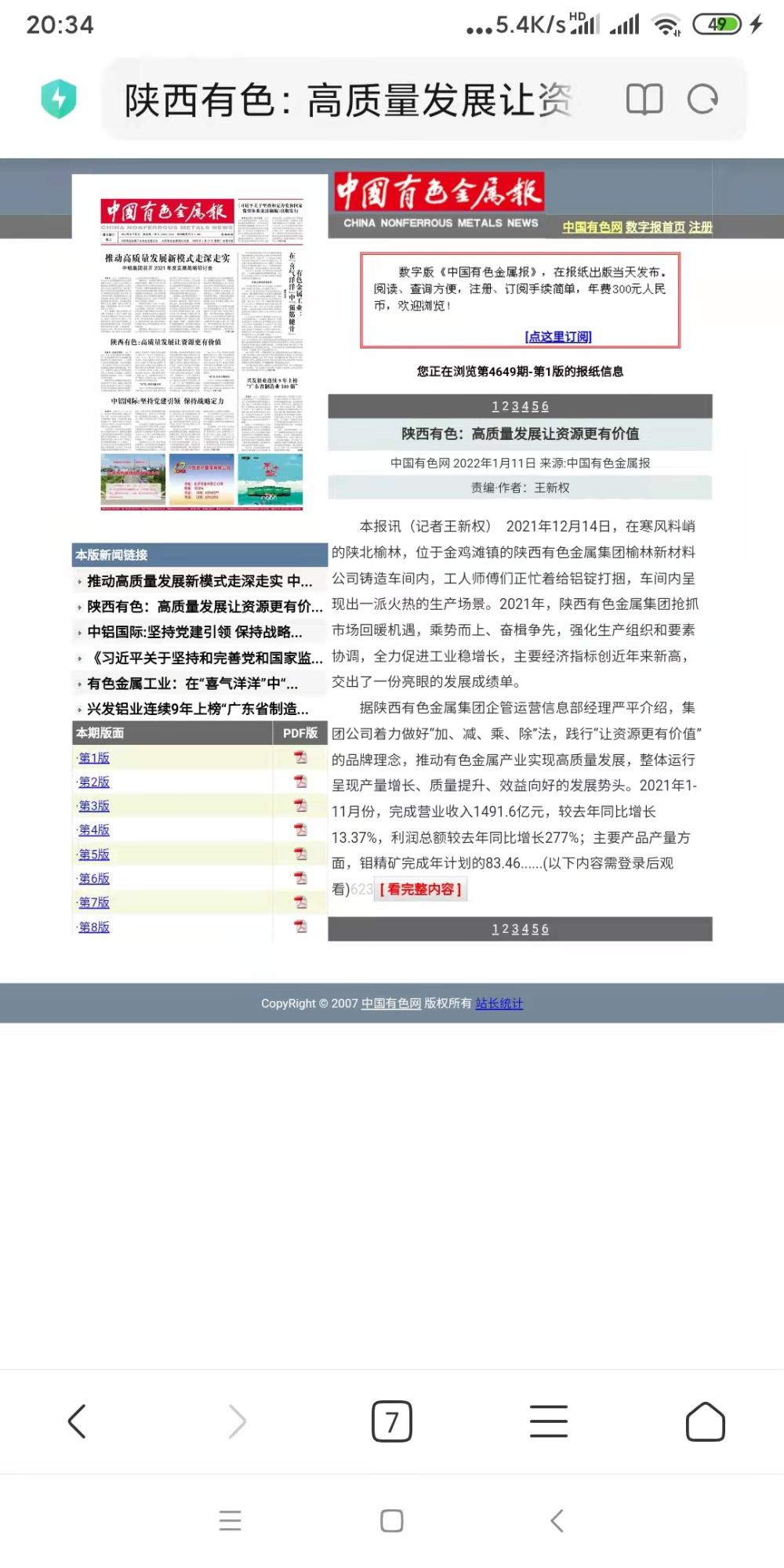 2021年,陜西有色金屬集團(tuán)在完成榆林煤電鋁產(chǎn)業(yè)整合的基礎(chǔ)上,積極推動(dòng)榆林新材料公司股權(quán)轉(zhuǎn)讓和引進(jìn)投資者工作。鉛鋅采選板塊擬上市主體——陜西西北有色鉛鋅集團(tuán)有限公司已被列入我省上市后備企業(yè)名單。同時(shí),權(quán)屬上市公司高質(zhì)量發(fā)展成效顯著:今年初,寶鈦股份圓滿(mǎn)完成非公開(kāi)發(fā)行股票工作,募集資金20.05億元;9月16日,金鉬股份市值創(chuàng)6年來(lái)新高。
