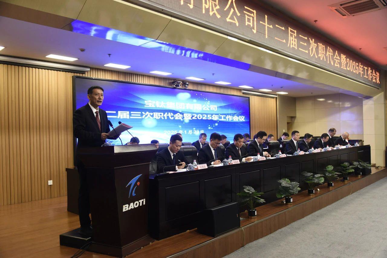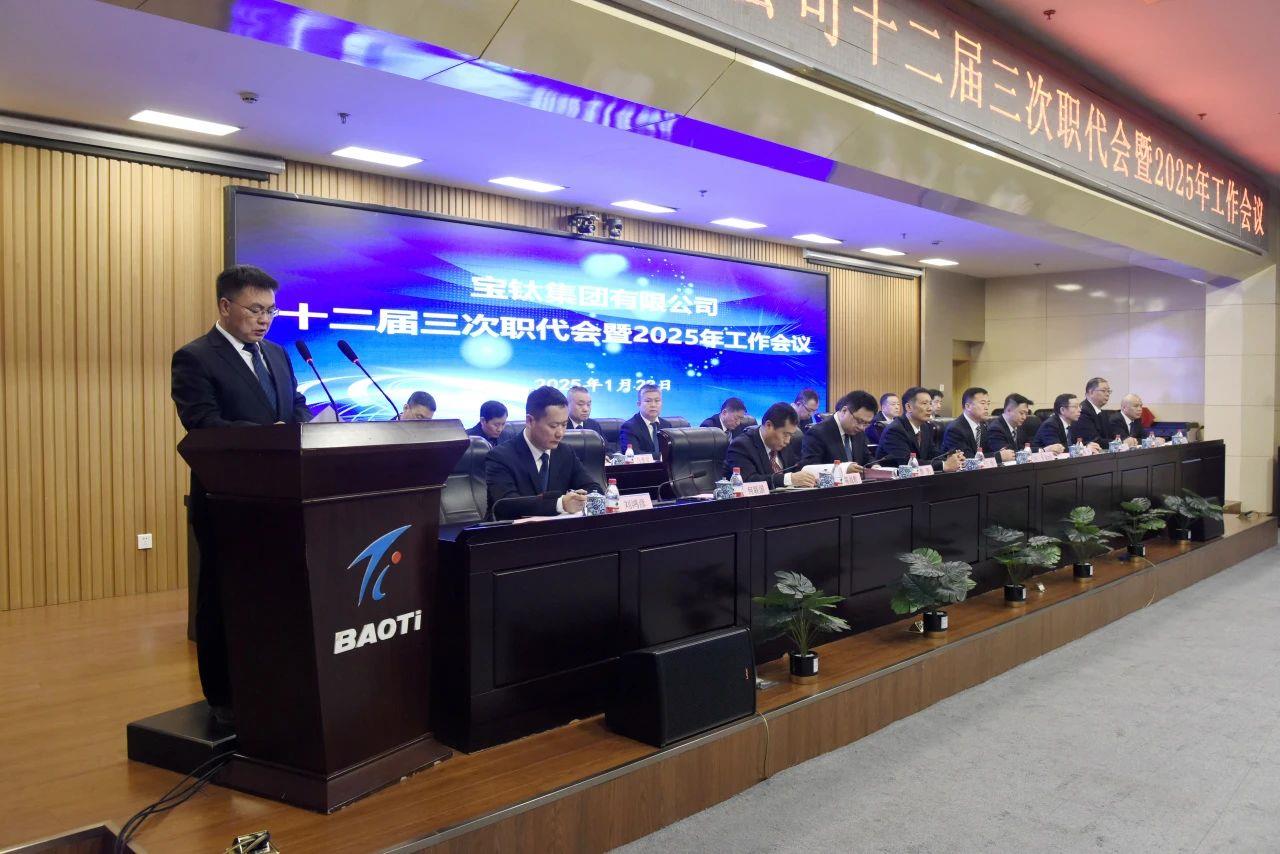 1月23日,寶鈦集團(tuán)十二屆三次職代會(huì)暨2025年工作會(huì)議順利召開。集團(tuán)黨委書記、董事長(zhǎng)、總經(jīng)理王儉作工作報(bào)告,黨委副書記、工會(huì)主席賀治民主持會(huì)議,黨委委員、副總經(jīng)理何聯(lián)國(guó)傳達(dá)上級(jí)會(huì)議精神。