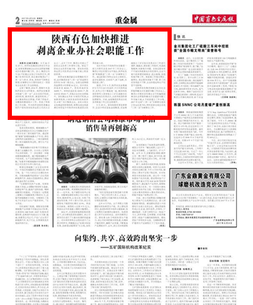 5月26日至27日,陜西有色集團(tuán)在西安召開會(huì)議,安排部署剝離企業(yè)辦社會(huì)職能和解決歷史遺留問題工作。會(huì)上,集團(tuán)公司與20戶權(quán)屬企業(yè)簽訂目標(biāo)責(zé)任書,明確了改革時(shí)間表,標(biāo)志著該集團(tuán)以“三供一業(yè)”(供水、供電、供熱供氣和物業(yè)管理)分離移交為主要內(nèi)容的又一項(xiàng)國有企業(yè)改革工作全面推進(jìn)。