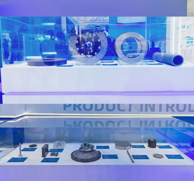 近年來,陜西有色金屬集團深化改革創新,以“著力科技自立自強,建設現代產業體系”為著力點,錨定“千百十一”高質量發展階段性目標,轉型升級傳統產業,培育發展戰新產業,前瞻布局未來產業。本次參展,碳硅新材以“碳硅筑新,智領未來”為核心主題,深度融合企業技術基因與產業特性,展出中間相瀝青基碳纖維及其復材、高性能樹脂、金屬基復材、碳陶剎車盤、碳陶熱場、超韌氧化鋁粉體、高純碳化硅粉體等37件戰新類產品。通過視覺呈現、互動體驗等多維度協同,打造“沉浸式技術展示+精準化合作對接”的創新展出形式,受到復合材料行業專家一致好評,吸引了眾多行業從業者參觀駐足,有效提升了陜西有色品牌識別度。參展產品體現了碳硅新材與國內知名高校院士專家團隊的深度合作,不僅性能優勢顯著,更具備成熟的產業化落地能力,充分彰顯“技術引領、產研融合”的發展特色。
