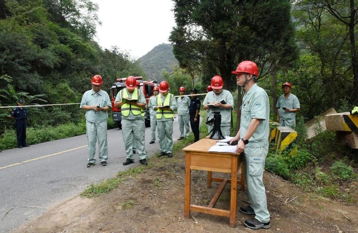 當日16時24分,演練正式啟動。場景模擬連續暴雨導致臨崖路段突發山體滑坡,車輛遭滾石擊中,致3人受傷、道路中斷的緊急狀況。險情發生后,現場人員立即上報信息,寶鈦集團應急指揮辦公室迅速研判態勢并報請總指揮啟動Ⅰ級應急響應。各專項工作組聞令即動,趕赴現場組建應急指揮部,按職責分工展開救援行動。