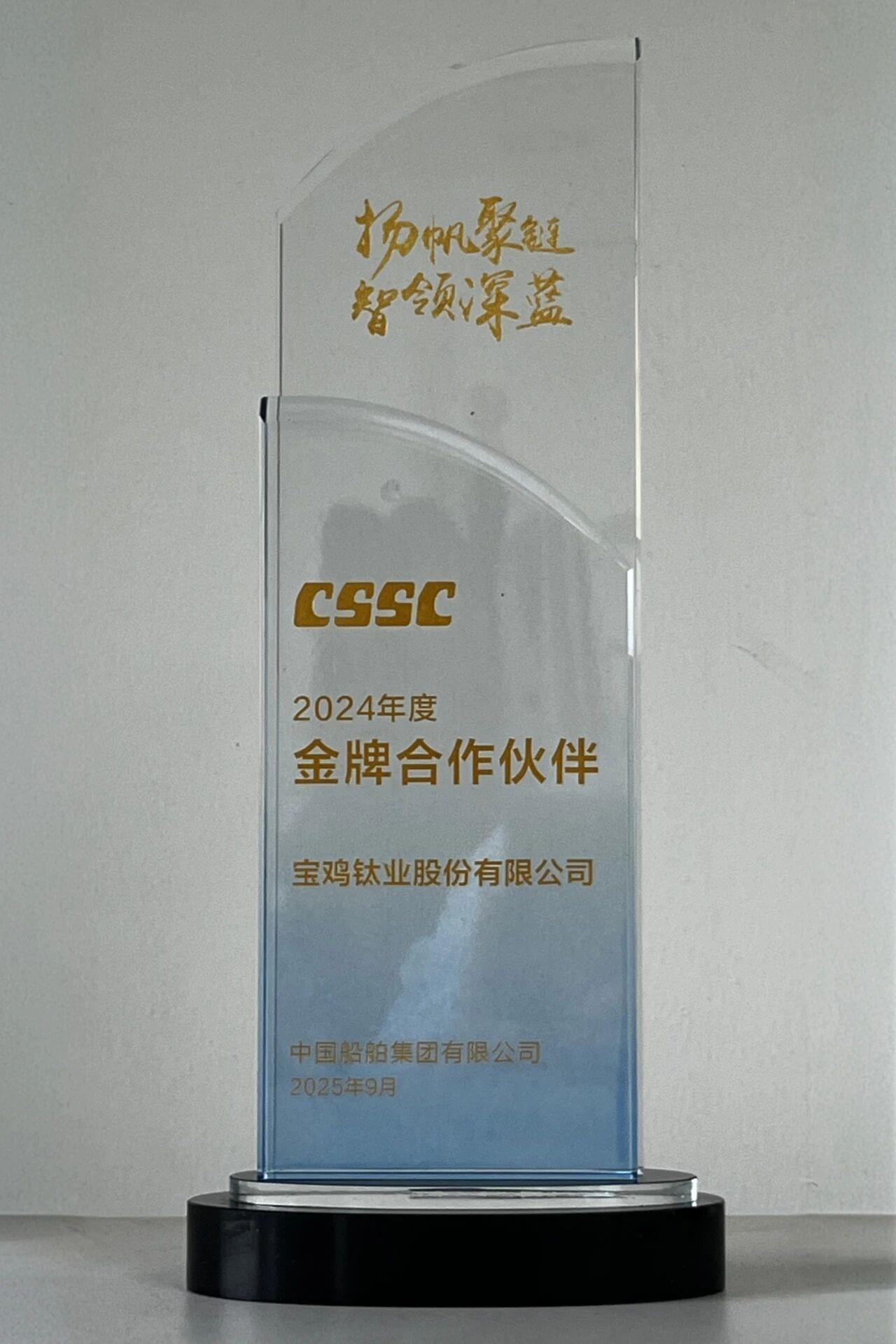 近日,中國船舶集團有限公司(以下簡稱中船集團)舉辦以“揚帆聚鏈 智領(lǐng)深藍”為主題的產(chǎn)業(yè)鏈供應(yīng)鏈大會。作為鈦及鈦合金材料領(lǐng)域的代表,寶鈦股份在大會上榮獲2024年度“金牌合作伙伴”稱號。寶鈦股份總經(jīng)理張海龍帶隊出席會議并領(lǐng)獎。