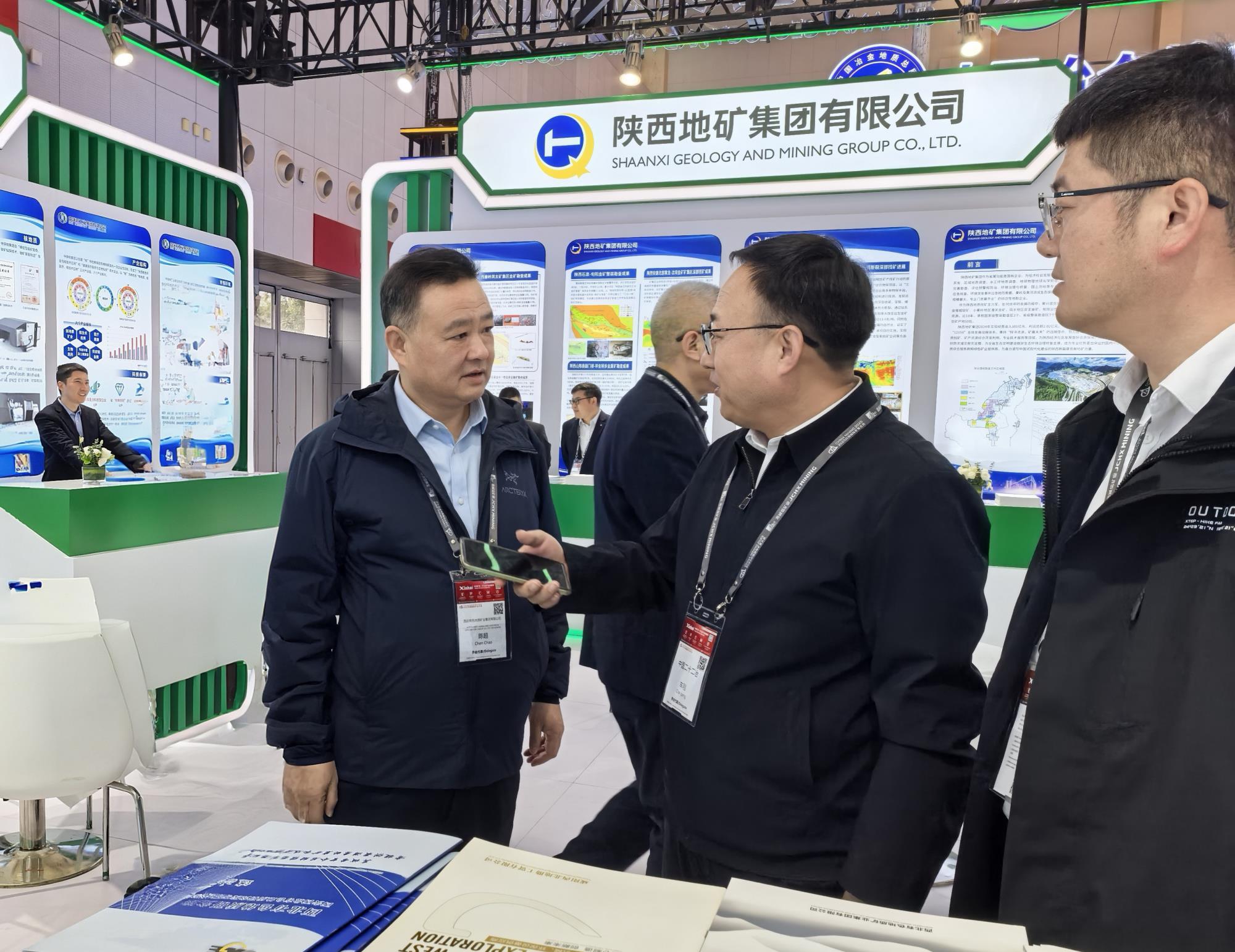 展會(huì)現(xiàn)場(chǎng),兩集團(tuán)通過展板展示、現(xiàn)場(chǎng)講解、案例分享、資料推介等多元化方式,全方位呈現(xiàn)了兩集團(tuán)在地質(zhì)技術(shù)服務(wù)、礦業(yè)開發(fā)、工程施工、精工智造及貴金屬新材料等領(lǐng)域的核心優(yōu)勢(shì)與實(shí)踐成果。地礦集團(tuán)重點(diǎn)展示了找礦突破及“天空地井”一體化地質(zhì)技術(shù)應(yīng)用、物探設(shè)備自主研發(fā)、地質(zhì)災(zāi)害防治、綠色礦山建設(shè)、資源綜合利用、礦山數(shù)智化轉(zhuǎn)型升級(jí)等系列高質(zhì)量發(fā)展成果,黃金集團(tuán)則凸顯全產(chǎn)業(yè)鏈布局、“秦金”品牌優(yōu)勢(shì)、貴金屬新材料產(chǎn)業(yè)化及全國(guó)大型體育賽事特許運(yùn)營(yíng)等亮點(diǎn)工作,充分彰顯了兩集團(tuán)產(chǎn)業(yè)“向新、向綠、向優(yōu)”發(fā)展的核心競(jìng)爭(zhēng)力。