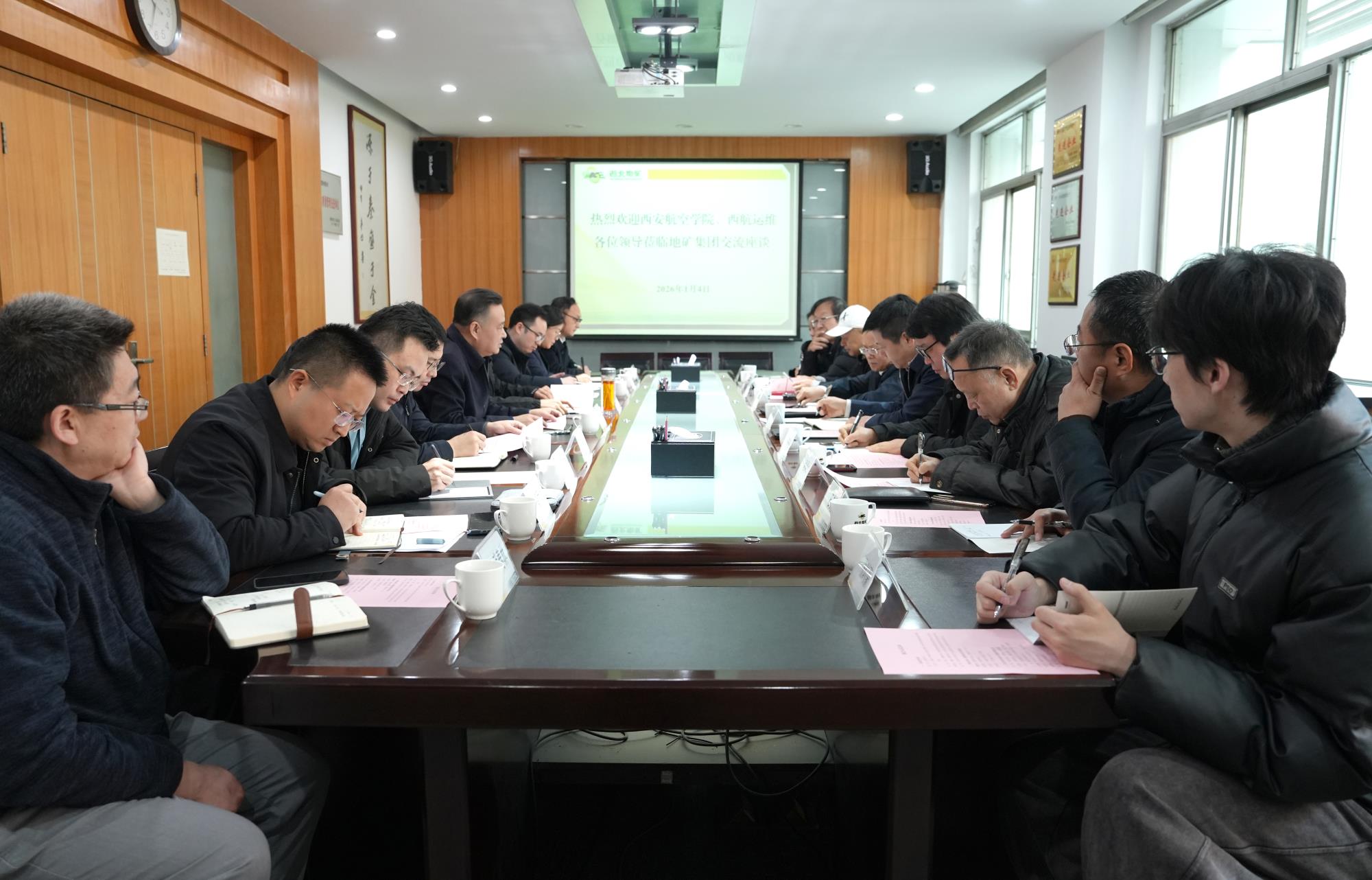1月4日,西安航空學(xué)院黨委副書記曹淵、西航運維公司董事長兼人工智能中心主任周鵬博一行到訪地礦集團、黃金集團,圍繞深化“政產(chǎn)學(xué)研用”協(xié)同創(chuàng)新,推動“西航低空無人探礦系統(tǒng)”研發(fā)與推廣應(yīng)用進行座談交流。中鋁礦產(chǎn)資源公司原總經(jīng)理、西北有色地質(zhì)勘查局原副局長王東生,西安航空學(xué)院特聘專家、西北低空經(jīng)濟科技研究院技術(shù)總顧問彭波、首席科學(xué)家龔怡宏,西航運維高級顧問趙清洲、活塞發(fā)動機總工程師石良臣等專家隨同來訪。兩集團黨委書記、董事長,地礦集團總經(jīng)理陳超出席座談并對來訪人員表示歡迎,兩集團黨委委員、副總經(jīng)理、總工程師王瑞廷主持座談會。