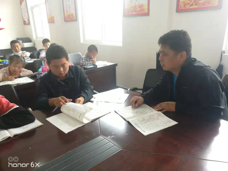 得知這一情況后,駐村工作隊決定在村上開辦暑期輔導班。隊員中楊威、呂金輝是本科畢業,王長江是研究生學歷,大家齊上陣,擔任義務輔導老師。同時,駐村隊長張濤了解到大寨村劉愛勤的小兒子李星良剛參加完高考的,成績遠超一本線,也動員他參與到輔導班的工作上來。大家一道為孩子們解答暑假作業中的難點、幫助孩子們進行新課程的預習。為了更好地為孩子們答疑解惑,輔導班還建立了微信群,為實現遠程課業輔導和家庭教育咨詢搭建了平臺。