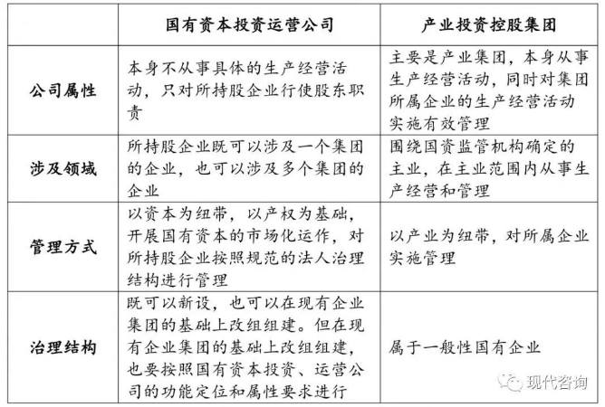 此外,國有資本投資運營公司和產業投資控股集團也是有區別的,具體區別如下表所示: