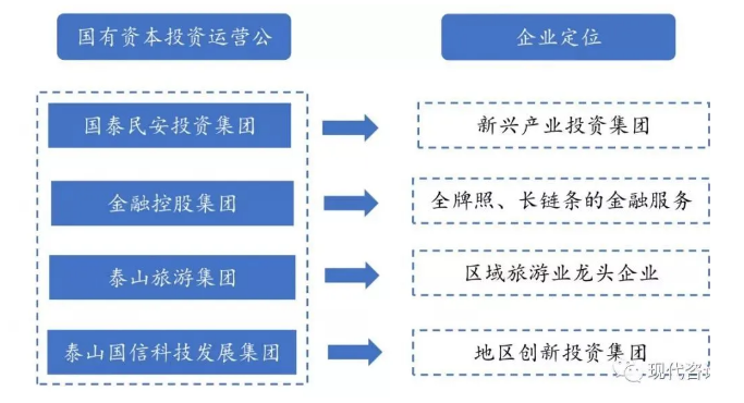 地市級層面,例如泰安市在原產業集團的基礎上改建四家市屬集投資、運營于一體的國有資本投資運營公司——國泰民安投資集團、金融控股集團、泰山旅游集團、泰山國信科技發展集團。