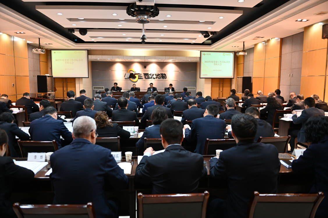 會上,兩集團黨委書記、董事長秦西社代表領導班子作述職報告和選人用人專項工作報告。2022年,兩集團領導班子成員在陜西有色金屬集團黨委的堅強領導下,帶領廣大干部職工團結一致、真抓實干,全年實現營業收入108.6億元,利潤總額1.1億元,實現了營收破百億、利潤破一億的目標。其中,大地質產業格局穩固、礦業發展勢能增強、工程施工拓展市場、精工智造穩健發展、上市工作積極推動、改革任務圓滿完成、重點工作有力推進、科技創新成效喜人、品牌建設顯著提升、黨的建設全面加強。2023年,兩集團將堅持以習近平新時代中國特色社會主義思想為指導,全面貫徹落實黨的二十大精神,高質高效組織生產經營,全力以赴完成目標任務,毫不動搖堅持黨的領導,持之以恒加強黨的建設,奮力推進兩集團高質量高效益發展,為陜西有色金屬集團實現新跨越貢獻力量!