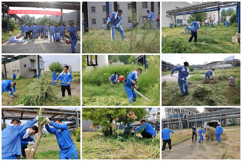 除草現場,廣大黨員干部職工協作配合,全力投入,除草、運草、清理井然有序,大家干勁十足。割草勞動中,大家全然不顧汗水浸透了衣服,草屑沾滿了頭發和眉梢。經過5天的不懈努力,完成了廠區65畝綠化面積的雜草清理工作,整個廠區煥然一新,雜草火災隱患得到了有效化解。