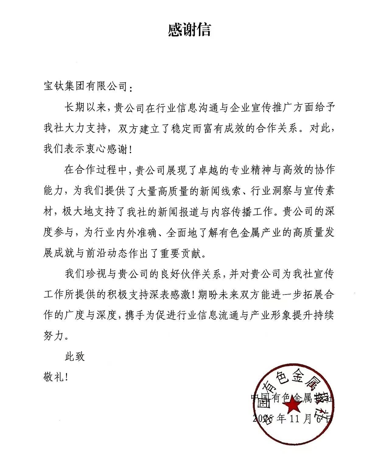 在近日召開的中國有色金屬報社2025年宣傳工作會議上,寶鈦集團被評為宣傳工作表現突出企業,寶鈦集團文化新聞中心王丹被評為宣傳工作表現突出個人,獲得通報表揚。