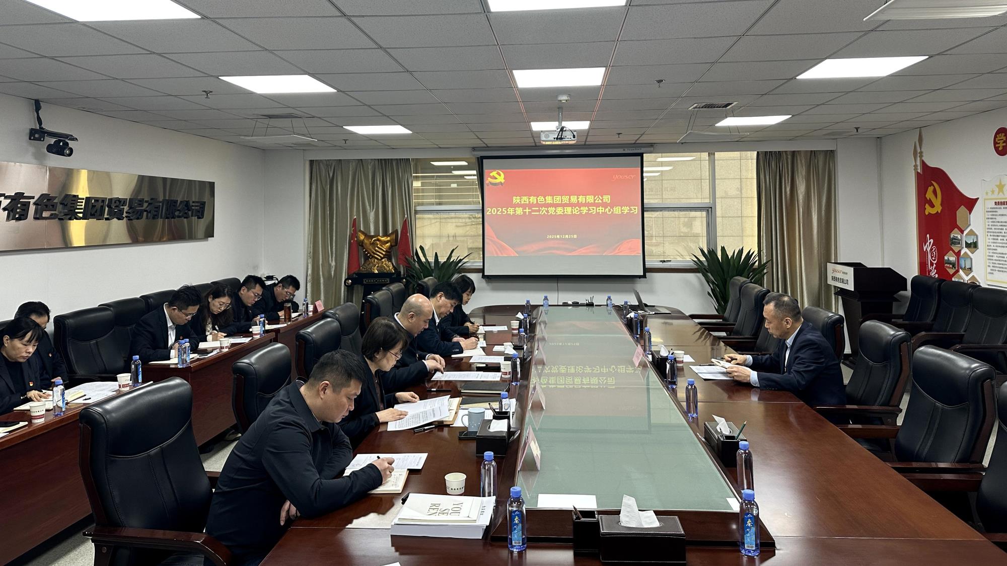 12月25日,貿易公司召開2025年黨委理論學習中心組第12次學習會議。陜西有色金屬集團黨委委員、副總經理趙黎明到會旁聽督導,貿易公司黨委書記石正軍主持會議。