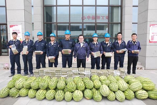 今年,公司工會在夏季送清涼活動中,投入6.3萬余元采購公司定點幫扶村坑鎮劉家坬村和村企共建幫扶村王家砭鎮豪則溝村農副產品,7月19日下午,公司黨委副書記、總經理蘇旭盛、工會主席胡磊向高溫下堅守崗位的一線職工送去西瓜和綠豆,并為他們送上公司的關心關懷,叮囑大家注意身體,增強安全生產意識,做好夏日防護,防止高溫中暑,同時也引導鼓勵廣大職工積極參與到消費扶貧中來,為鄉村振興貢獻力量。