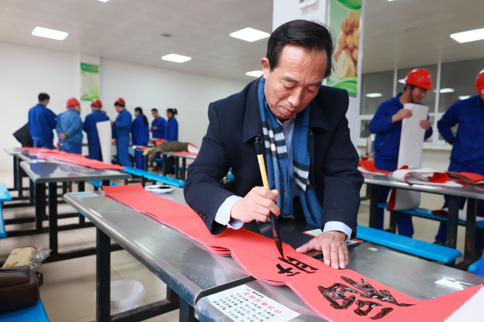 在活動現場,書畫家們凝神提筆、揮毫潑墨,一張張寓意美好祝愿的祝福躍然紙上,一幅幅散發著清新墨香的春聯各顯神韻。書畫家們將寫著吉祥祝福的春聯送到職工手中,拿著一幅幅喜慶的春聯,職工們喜笑顏開,紛紛表示感謝。廣大干部職工紛紛表示,這份來自書法家們親手書寫的春聯更有意義,不僅只是新春祝福,更是一種中國文化的傳承和自信。