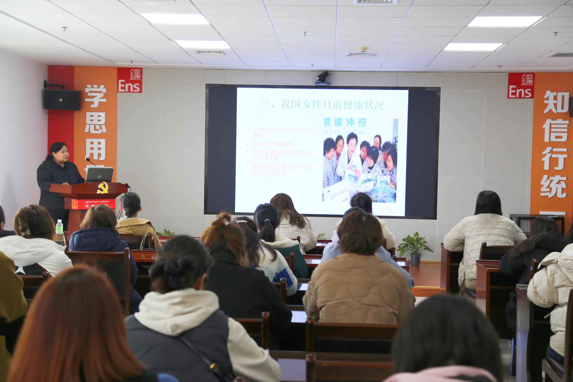當天下午,公司工會邀請華山半導體原職工醫(yī)院副院長穆雅麗為全體女工開展了女性健康知識講座,穆雅麗通過案例分析及現(xiàn)場互動等方式,圍繞女性防癌及心腦血管疾病預防知識等方面進行詳細講解,引導女性同胞們要定期自檢、體檢,加強日常生活中的自我保健。與會人員紛紛表示受益匪淺。
