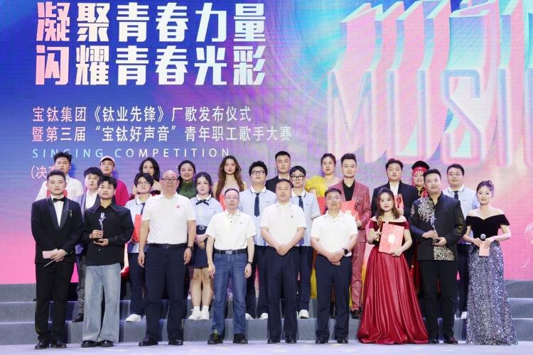 廠歌展演之后,第三屆“寶鈦好聲音”青年職工歌手大賽正式開賽。此次青年職工歌手大賽由集團團委主辦,經過一個多月的精心準備和選拔,15組選手從來自基層的48組選手中脫穎而出,于當晚同臺競技、一展歌喉。《九兒》《我站立的地方是中國》《飄向北方》《紅旗飄飄》等不同風格的歌曲輪番唱響、精彩演繹,為觀眾們獻上一場美妙的視聽盛宴,贏得了現場陣陣掌聲。最終,鍛造廠王欣宇榮獲冠軍;板材廠吳俁檳、鍛造廠趙瑞軒分獲亞軍;教培中心楊屹晨、板材廠陳澤璽、板材廠武琪迪分獲季軍。與會領導現場為獲獎選手頒獎并合影留念。