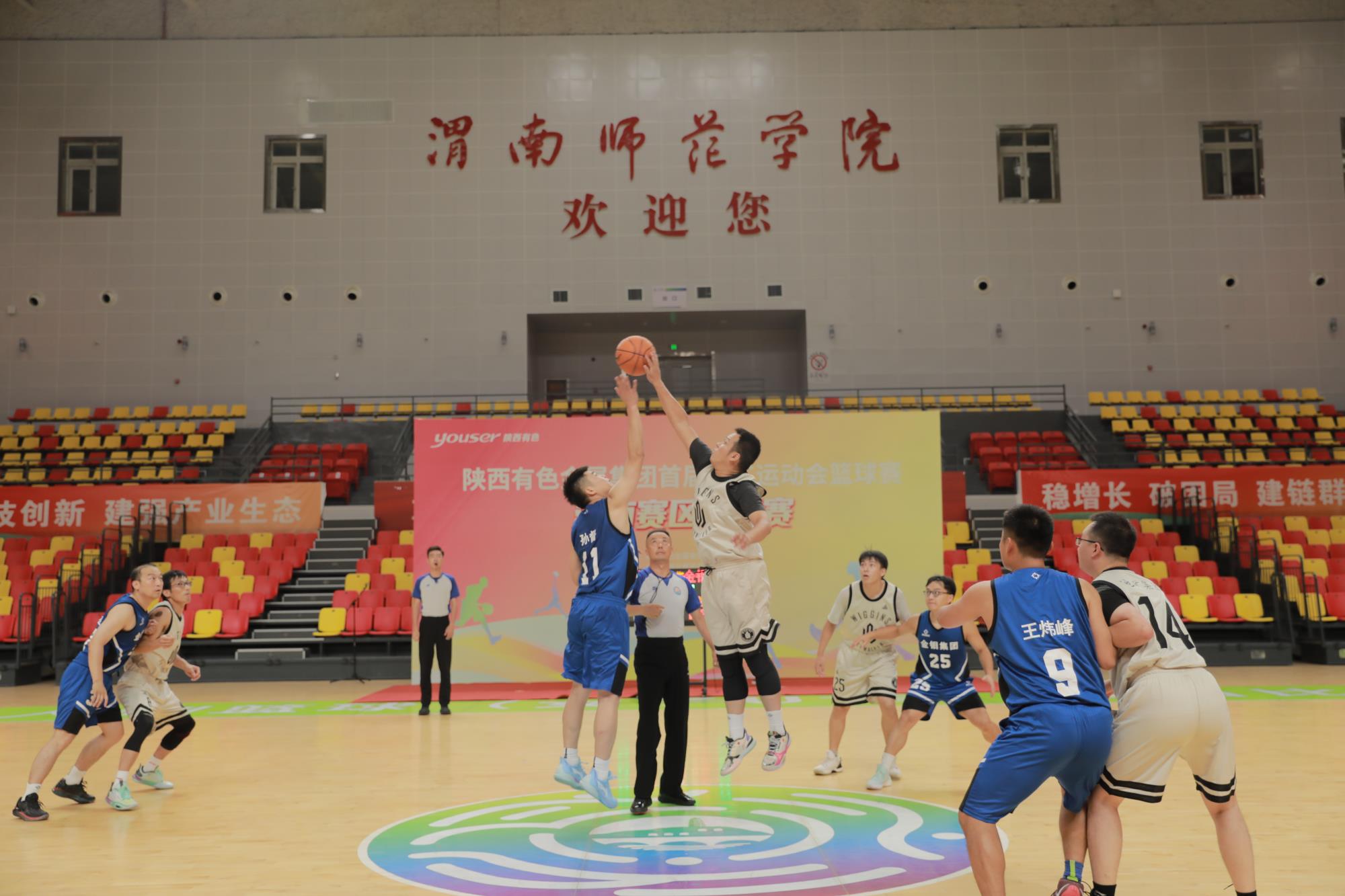 為慶祝中華人民共和國成立75周年,進一步活躍陜西有色金屬集團廣大職工業余文化生活,激發干事創業熱情,8月15日,由陜西有色金屬集團工會、團委主辦,金鉬集團工會、團委承辦的首屆職工運動會籃球項目組渭南賽區小組賽在渭南師范學院云帆體育館開賽。陜西有色金屬集團工會常務副主席張繼祥出席開幕式并宣布比賽開幕。金鉬集團黨委副書記、工會主席朱凌云主持開幕式。