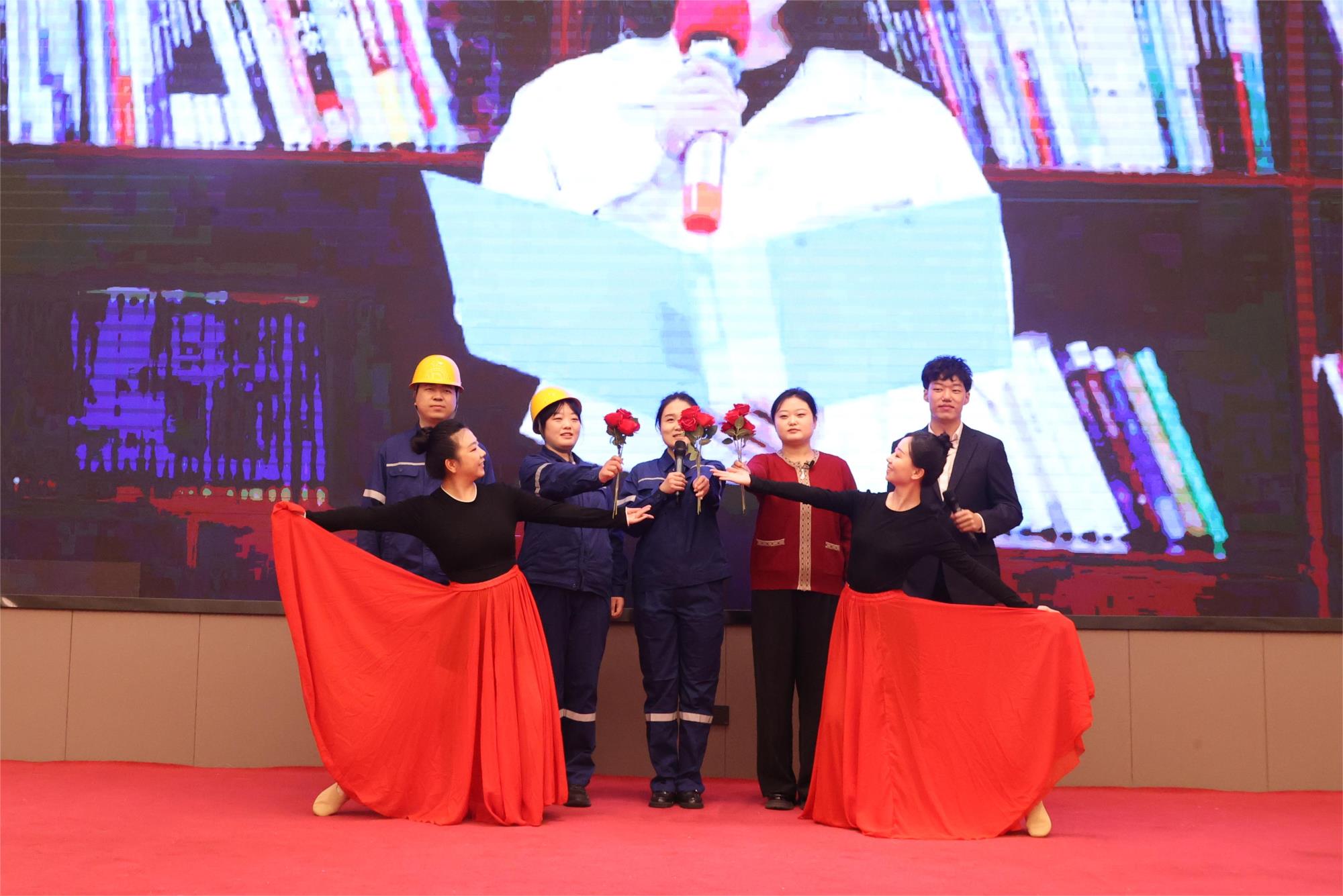 在張保生、王梅等五位嘉賓的共同啟動(dòng)下,“她聲音”朗誦與表達(dá)賦能項(xiàng)目正式啟動(dòng)。隨后,四位獲獎(jiǎng)職工代表以書傳情,依次分享了獲獎(jiǎng)作品:金鉬汝陽(yáng)丁志丹深情講述從學(xué)生到職場(chǎng)人的堅(jiān)守、質(zhì)管中心李俠重溫鉬都崢嶸歲月與質(zhì)量人的匠心精神、物流中心魏璐瑤分享在閱讀中感悟的善良與勇氣、礦山分公司東蕊帶領(lǐng)觀眾領(lǐng)略唐詩(shī)的絢爛色彩與家國(guó)情懷。現(xiàn)場(chǎng)觀眾靜心聆聽(tīng),共同感受文字背后的溫度與力量。最后原創(chuàng)誦演節(jié)目《鉬韻巾幗頌,群芳綻芳華》,通過(guò)動(dòng)人場(chǎng)景生動(dòng)展現(xiàn)了金鉬巾幗的卓越風(fēng)采。