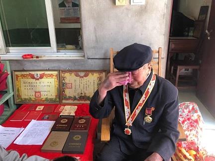 馬根周老人,1934年9月出生,1949年6月參軍,1955年6月加入中國共產(chǎn)黨,1957年4月復(fù)員回鄉(xiāng),參加過蘭州戰(zhàn)役、甘南剿匪戰(zhàn)等,先后擔(dān)任村里的生產(chǎn)隊長、會計、民兵連長、村委會委員等,直到65歲時才從村干部的崗位上退了下來。現(xiàn)已87歲高齡的馬老,雖白發(fā)蒼蒼,臉上布滿皺紋,但精神矍鑠,一提起所經(jīng)歷的那些崢嶸歲月,老人仍記憶猶新。