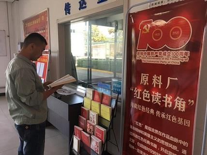 原料廠黨支部精心挑選的《家風傳承》、《家書里的百年信仰》、《火種》、《紅巖》等近20本紅色經典著作,一經展出就受到黨員干部和職工群眾的喜愛。有駐足翻閱的,也有登記后帶回車間、班組閱讀的,醒目的紅色讀書角成了原料廠一道亮麗的風景線。