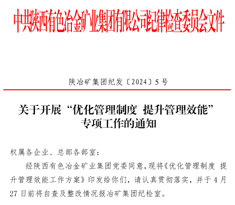 為把制度建設要求體現到全面從嚴治黨全過程、各方面、各層級,讓各項規章制度管得住、行得通、用得好、有成效,促進公司形成科學、高效、規范的現代管理體系,冶礦集團紀委以“關鍵少數”為主要對象,以檢查制度執行為抓手,決定今年在全公司開展“優化管理制度 提升管理效能”專項工作。重點查找執行制度時打折扣、搞變通、審批不嚴、程序不規范等問題,或者干部利用職務上的影響,通過暗示、授意、指定等方式,違反公司規章制度的行為。